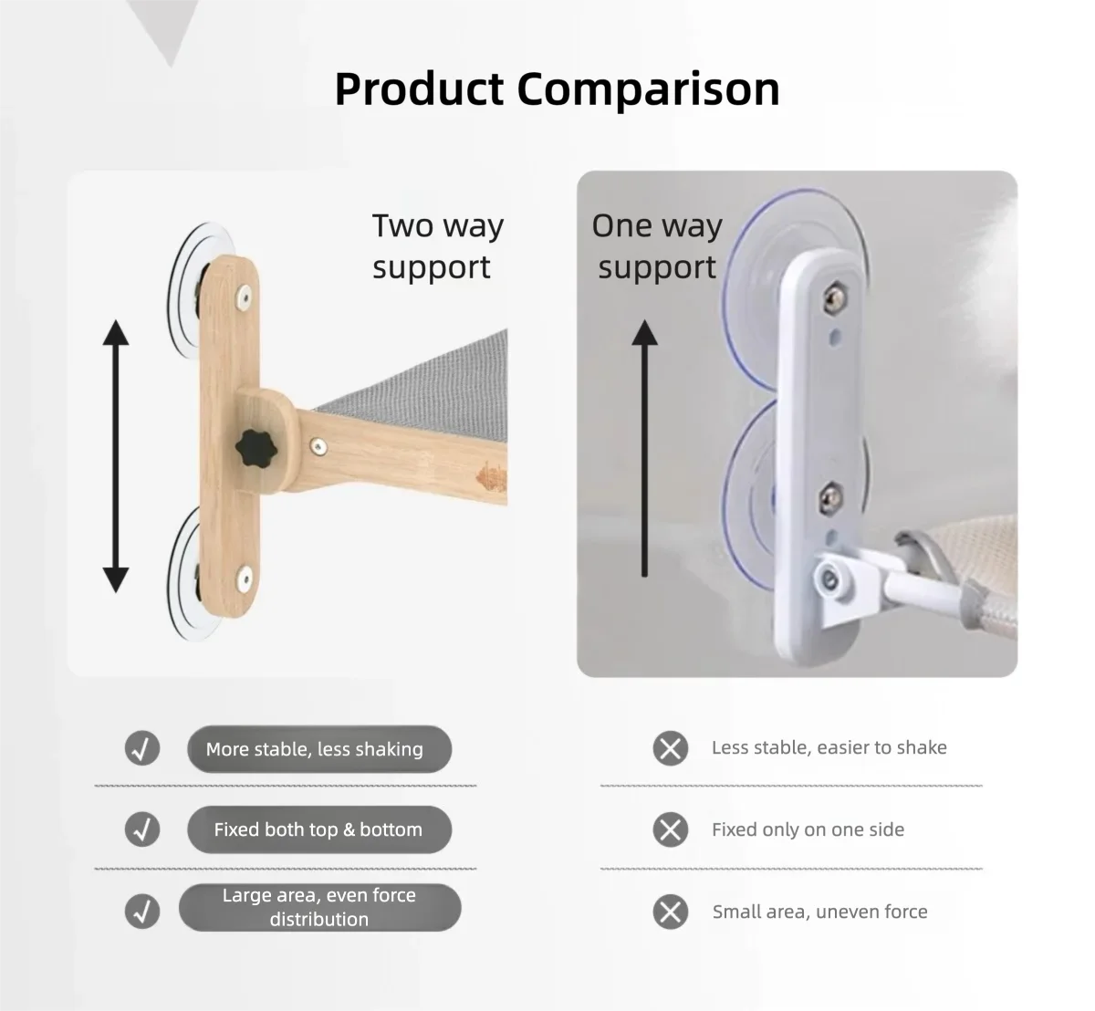Give your cat the ultimate spot to lounge and nap with this window-mounted cat hammock. Designed with strong suction cups (Ø85mm) and a reinforced frame, it can hold up to 20KG, making it stable and safe even for larger cats.