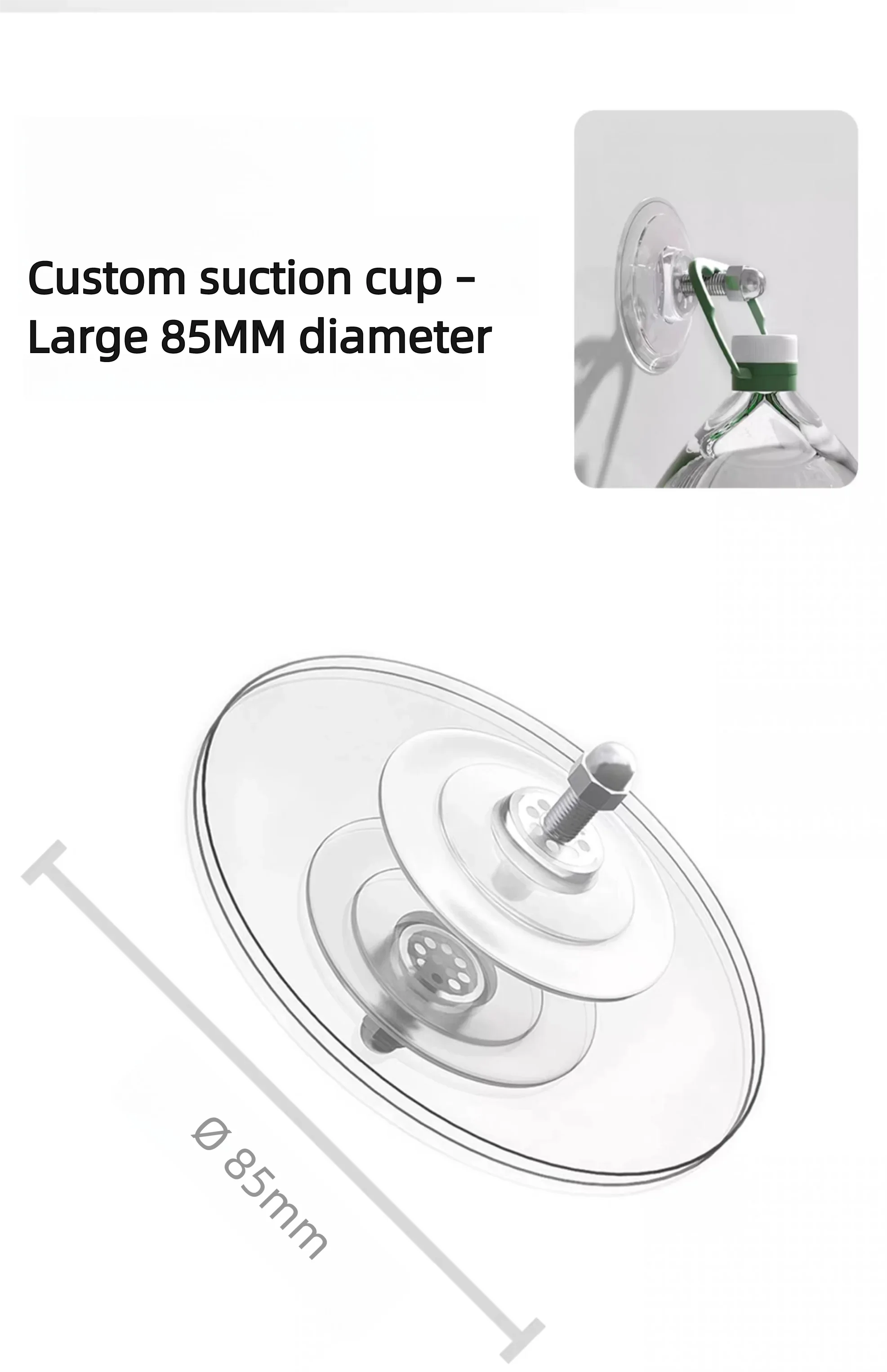 Strong suction cups Ø85mm → holds up to 20KG safely