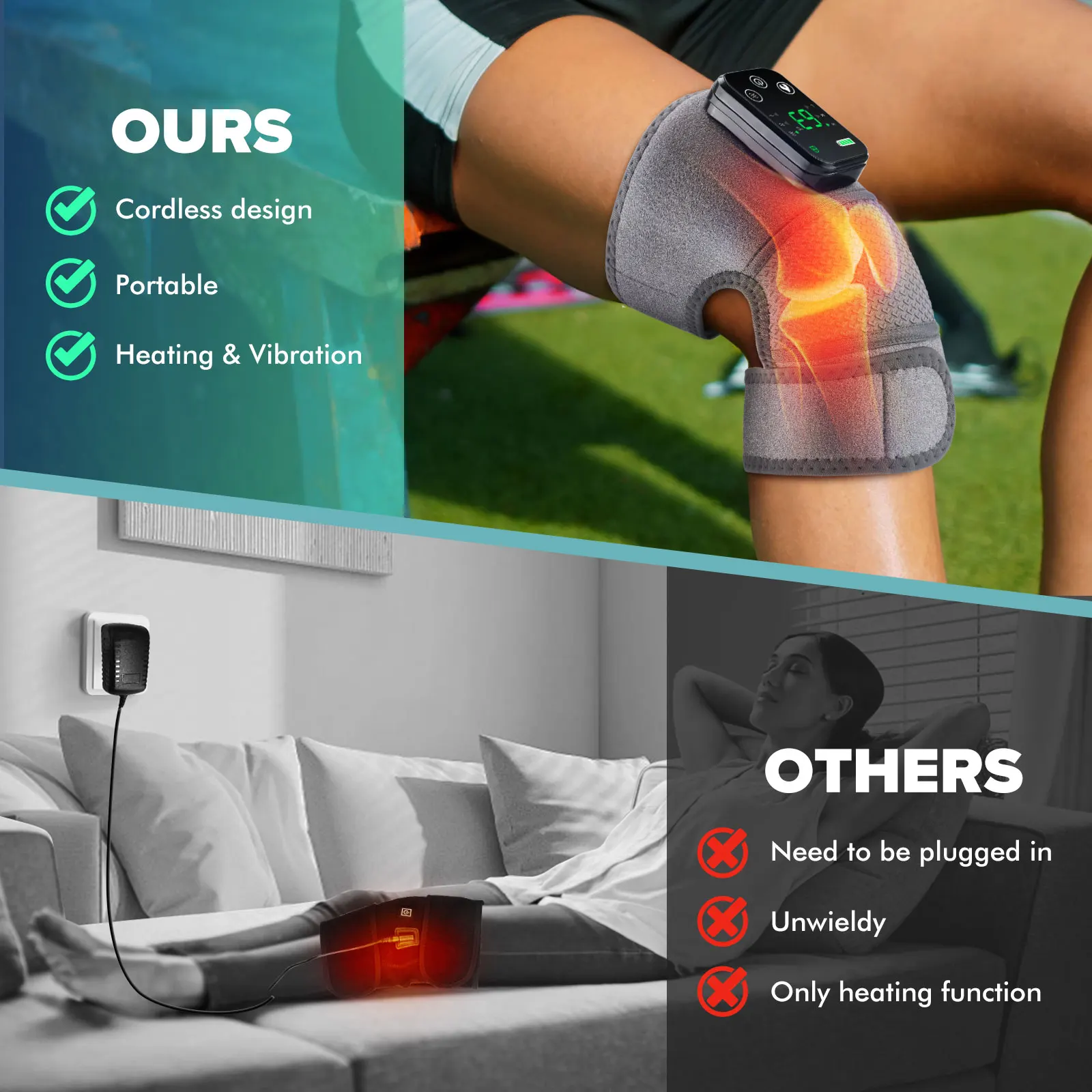 4. Built-in 4000mAh high-capacity rechargeable lithium battery, this knee pad supports wireless use, so you can enjoy a comfortable massage anytime, anywhere.