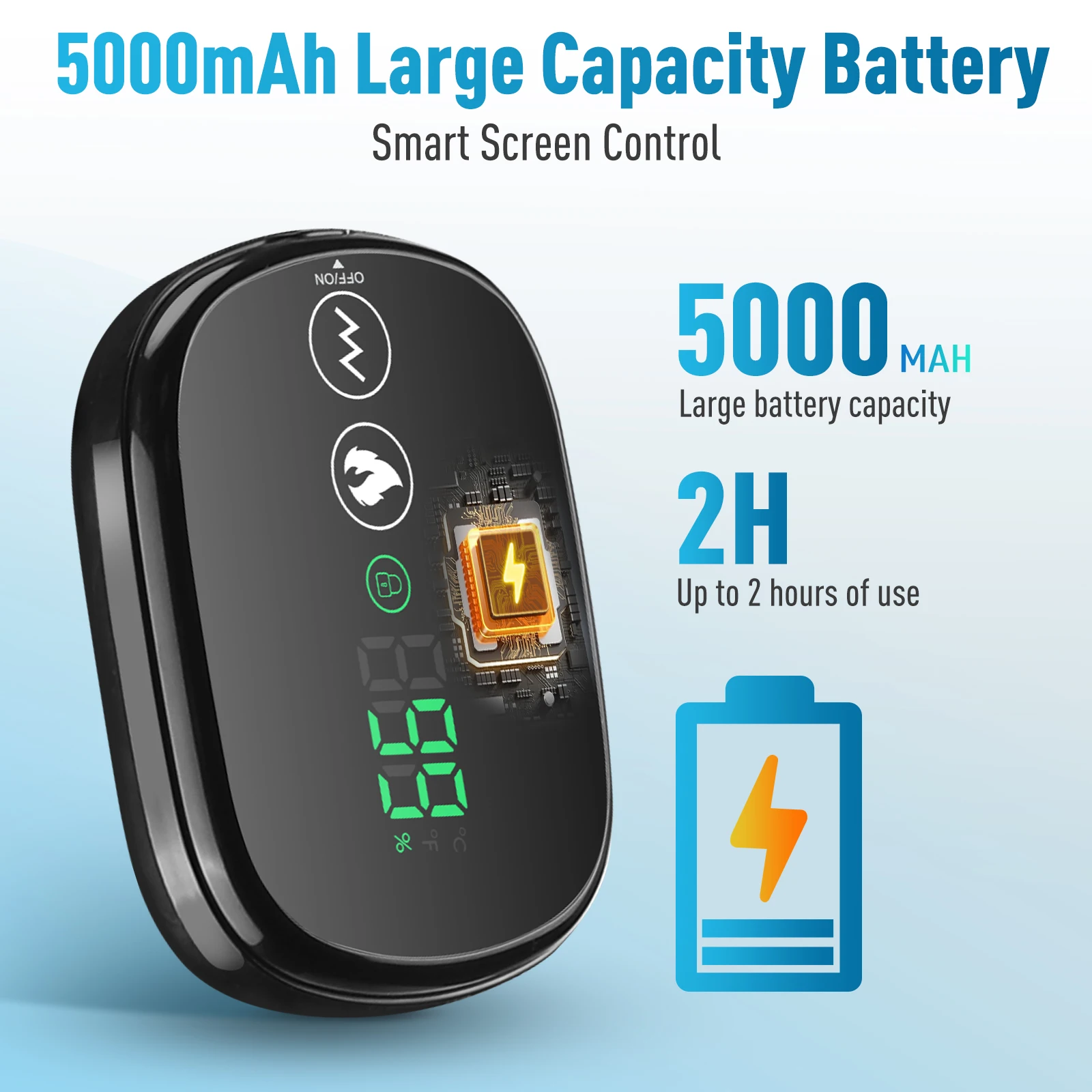 3. Built-in 5000mAh high-capacity battery, long-lasting life, a charge to meet the needs of the whole day, so you can enjoy a comfortable massage anytime, anywhere.